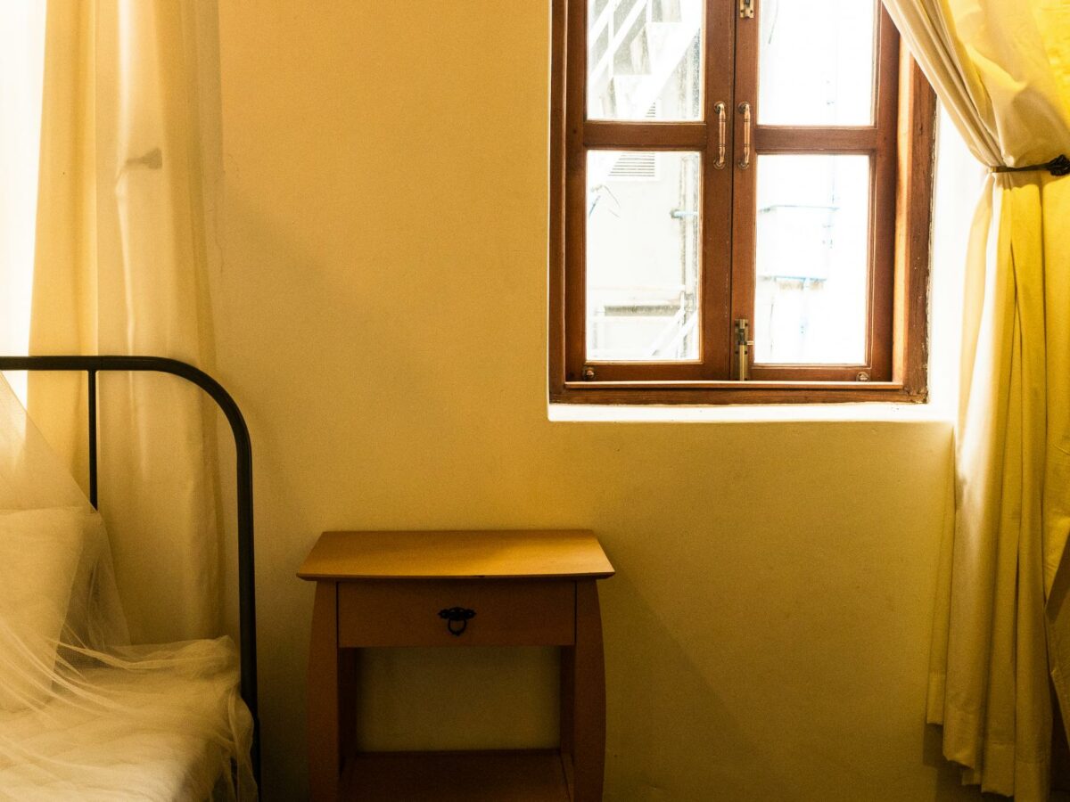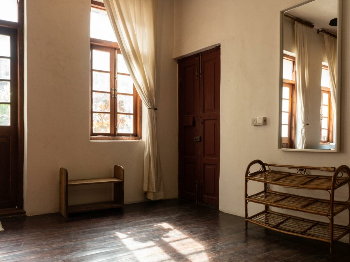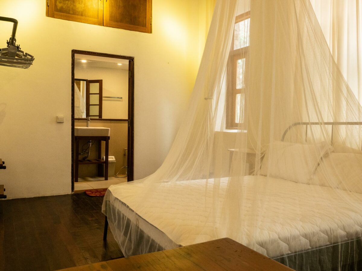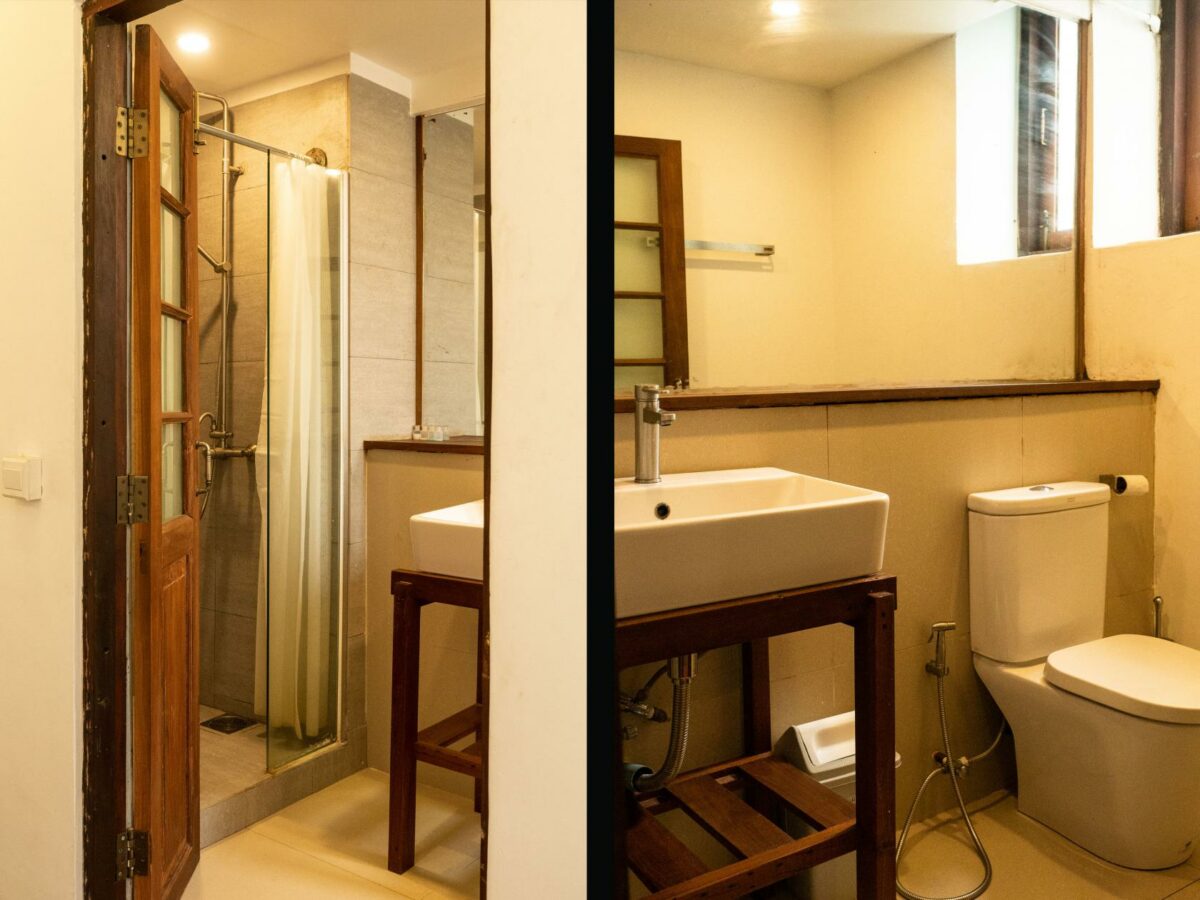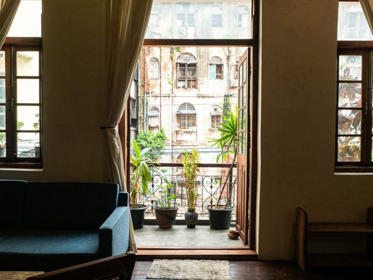 This stunning loft apartment is located on the first floor of a well preserved heritage building typical of Yangon in the early 1900’s, with teak wood work, exposed brick throughout, intricate windows details and high ceilings. Its airy open plan living makes it a great space to work and live, with plenty of light pouring in. Doh Eain has renovated three units in the building, including our office and the Alley Garden to the rear. It’s proximity to the office means the tenant is especially well taken care of. The bedroom is located to the rear of the flat which makes for a peaceful oasis despite being in the heart of downtown Yangon, a stone’s throw away from the Secretariat and the vibrant Bogalazay street.