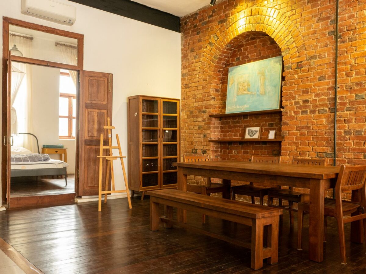 A well preserved heritage building typical of Yangon in the early 1900’s, with teak wood work, exposed brick throughout, intricate windows details and high ceilings. Its airy open plan living makes it a great space to work and live, with plenty of light pouring in.
