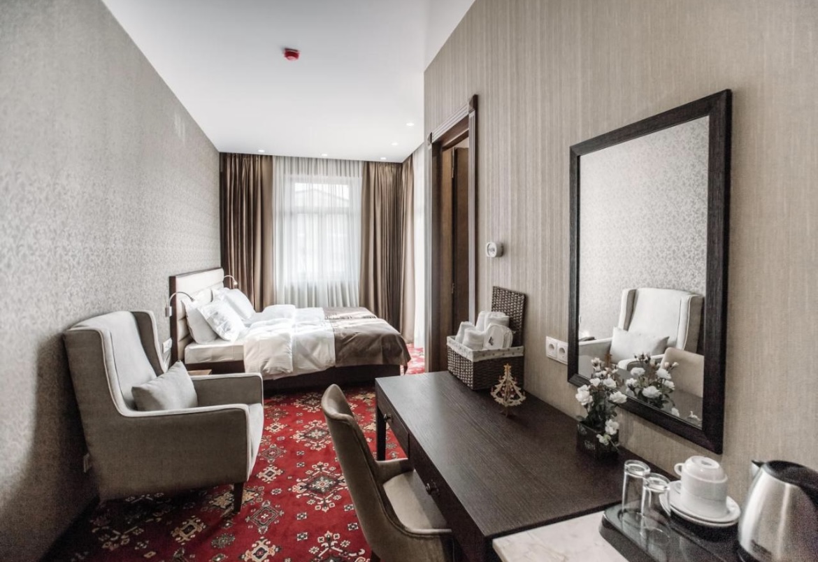Experience a new level of hospitality at the Sota Metekhi Hotel. With modern amenities and warm service, we ensure you’ll feel at home. Situated in the city’s heart, we offer prime accommodation with easy access to all significant points of interest, including restaurants, shopping malls and much more. Our luxurious bedrooms are equipped with everything you need for a relaxing stay. Enjoy our spa bathtub to soak away stress or sweat it out in our fitness room. Explore the city without worrying about transportation! Our airport pickup service will ensure you’re on time for your flight while our in-house tour desk organizes all your sightseeing adventures.