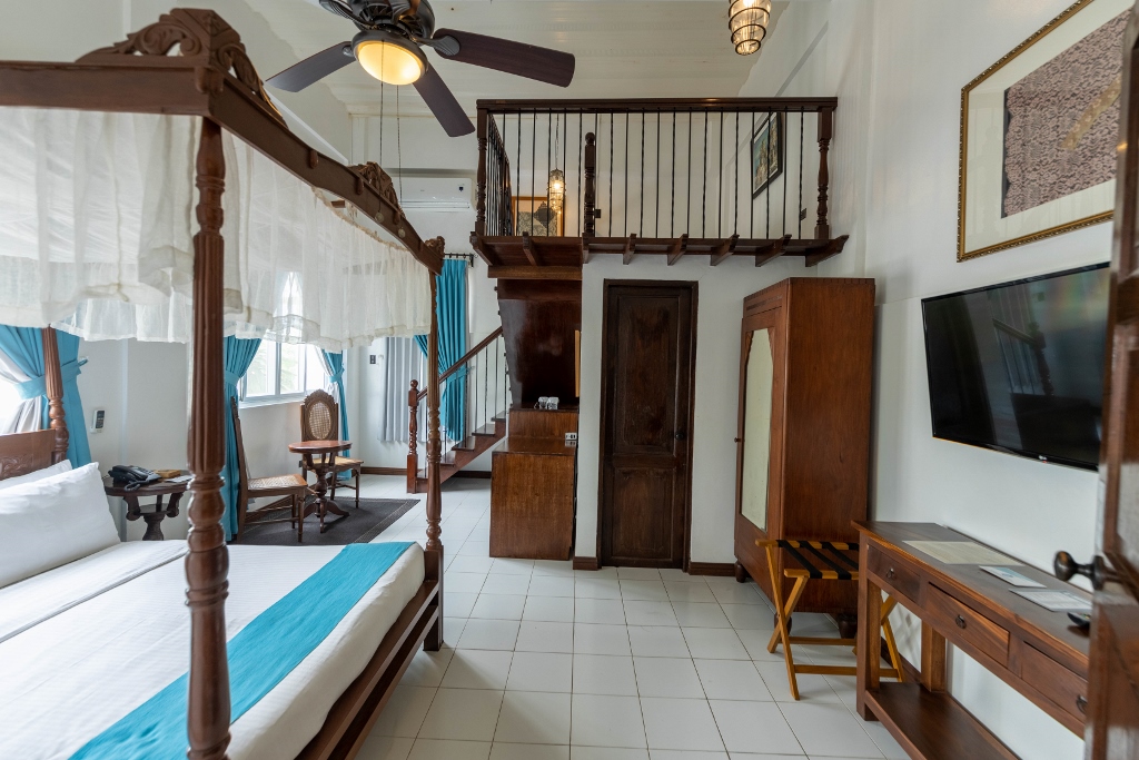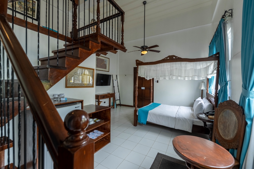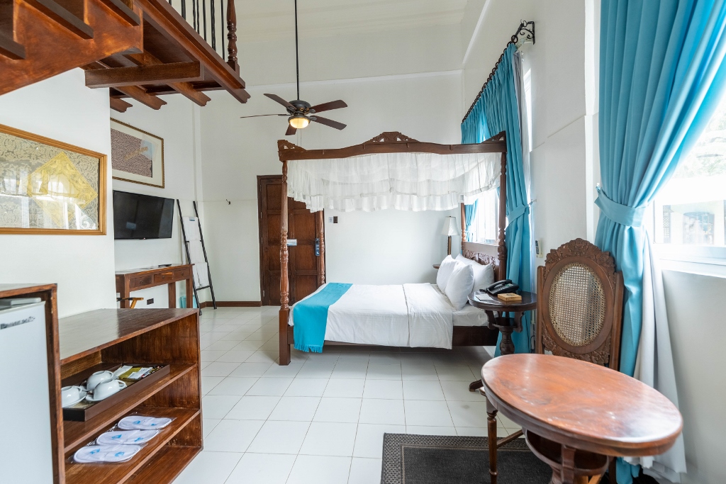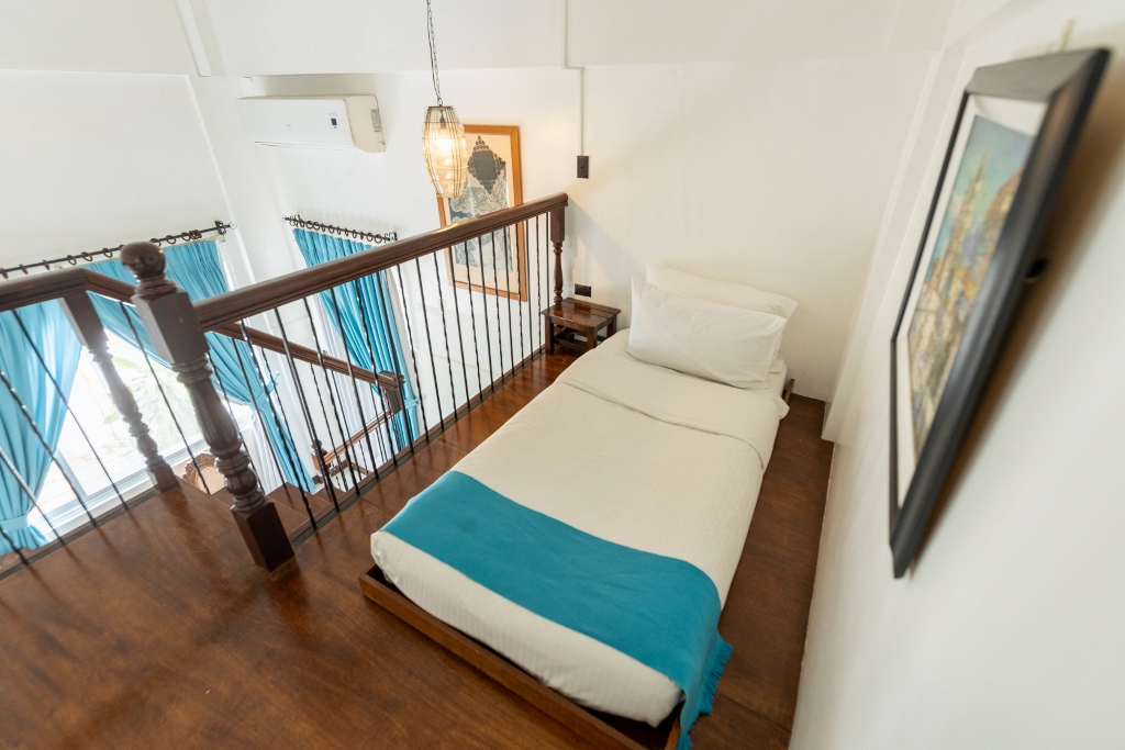 Bilimbi (In Tagalog: Kamias) – SUPERIOR TRIPLE WITH LOFT, offers a western back garden exposure and is equipped with a flat-screen HD TV with cable channels, split-type air conditioning unit, high speed internet access and plush bedding. The private bathroom comes with rain shower heads and free toiletries. Fitted with a queen size bed and a single bed. Kamias can accommodate three persons maximum of four with a complimentary breakfast of three.